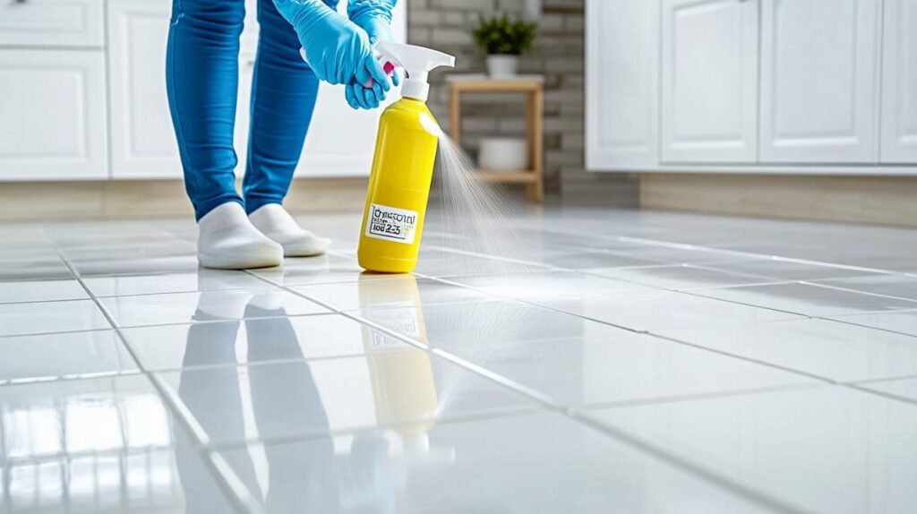 Dilution et application de la javel sur carrelage fraîchement posé